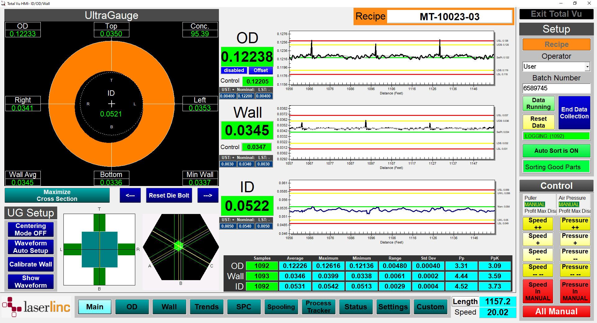 - Process scanning laser micrometer and UltraGauge+™ signals in real-time so you can instantaneously assess product quality and process trends